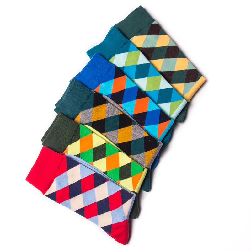 Носки мужские длинные хлопковые в радужную полоску, 6 пар