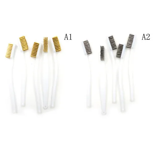 5 шт.лот, мини-пластиковая ручка, латунная щетина, проволочная щетка для очистки, сварка, шлак, ржавчина