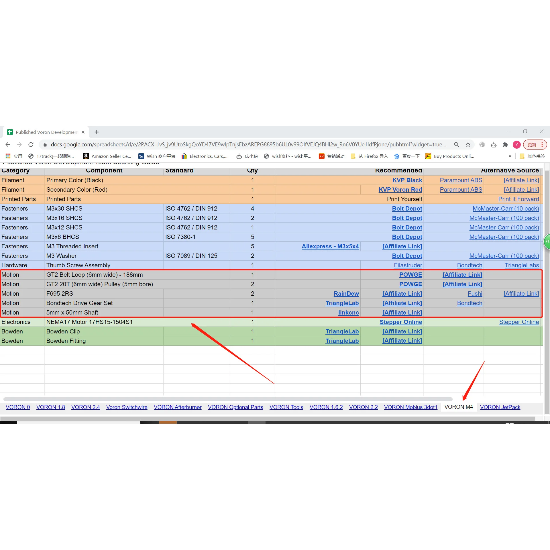 Набор экструдеров POWGE VORON M4 2GT 20T зубчатый шкив 188-2GT GT2 петля для ремня 5x50 мм подшипник вала F625-2RS Bondtech