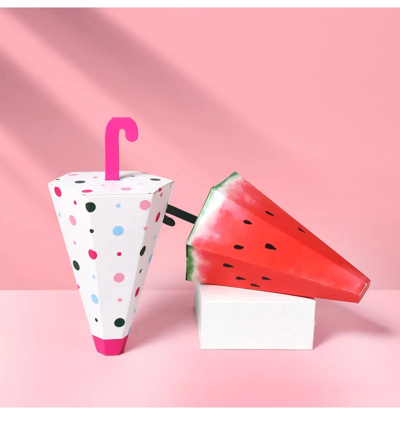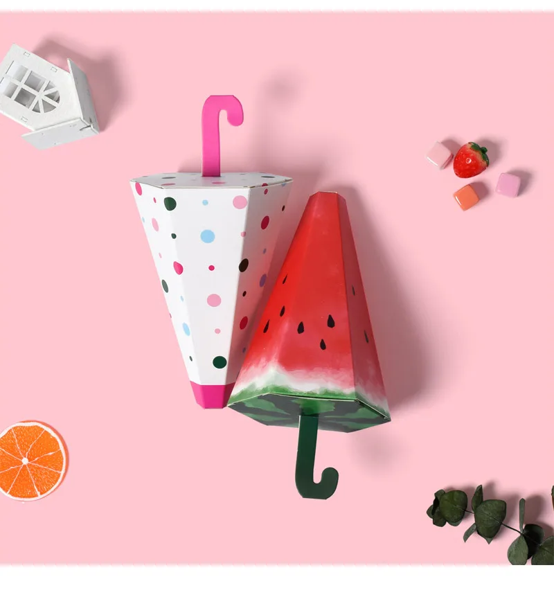 Маленькая подарочная упаковочная коробка, креативная мультяшная форма зонтика, сладкий для печенья, закусок, Подарочная коробка для конфет, Свадебная коробка в горошек, арбуз