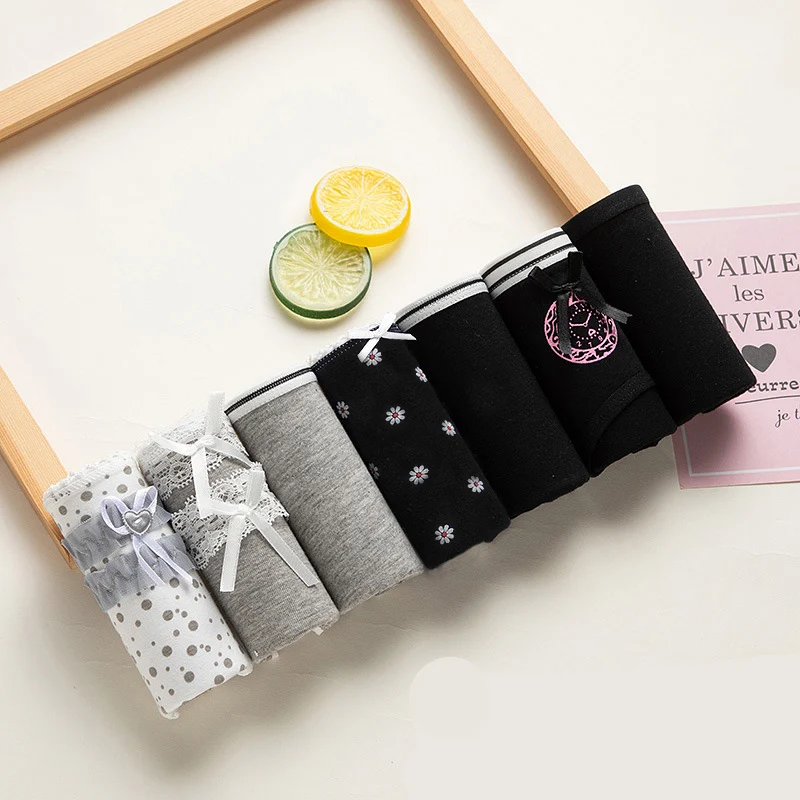 Трусы женские хлопковые кружевные, 7 шт., дышащие мягкие, пикантное нижнее белье, Удобные однотонные, для девушек