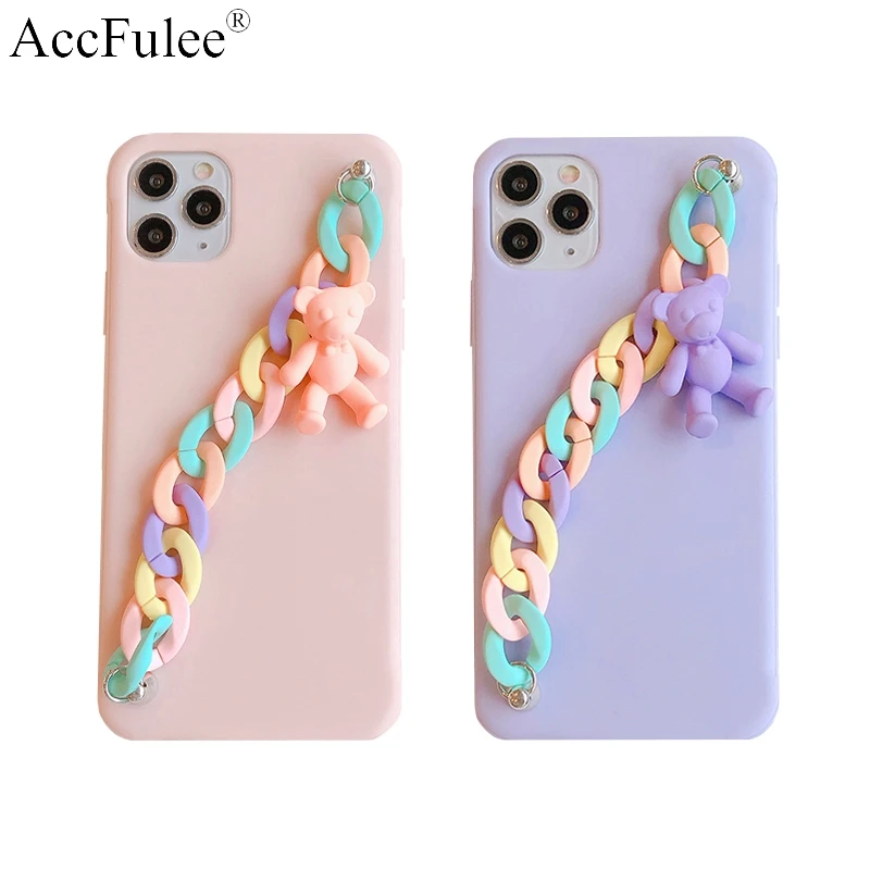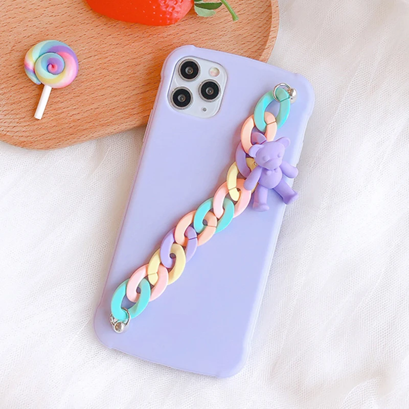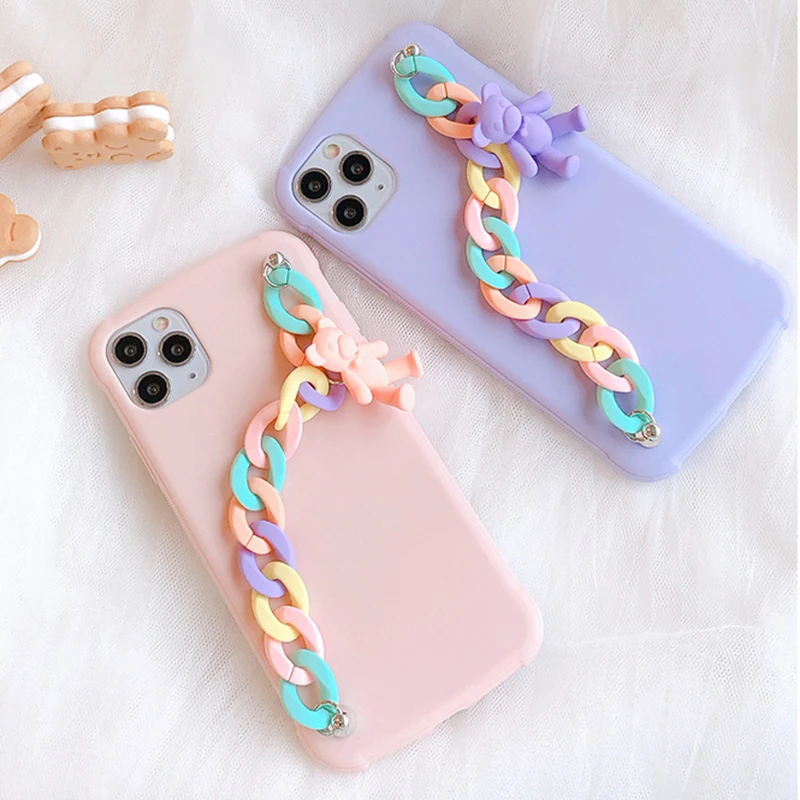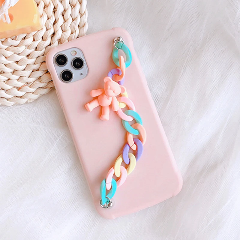 Чехол с подвеской-браслетом для Apple iPhone 11 mini 12 Pro Max XR XS 6 6S 7 8 Plus SE 2020, мягкий чехол из ТПУ с цепочкой, карамельный медведь