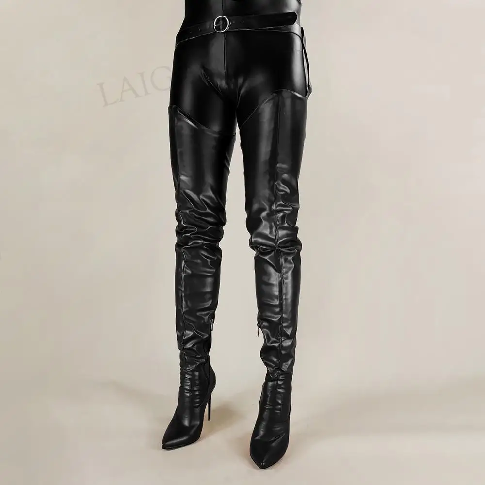 LAIGZEMсексуальные женские сапоги до бедра, высокие сапоги на молни...