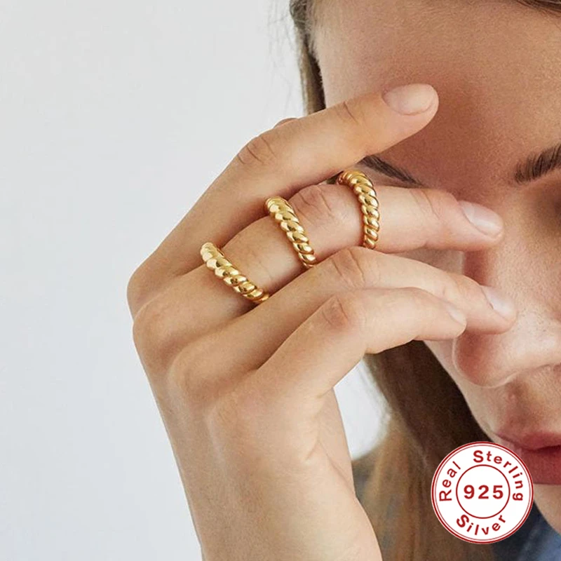 Автоклав 925 пробы серебро 2020 Новый минималистичный нишу гладкая закрученное кольцо для Для женщин Творческий простые женские кольца ювелирные изделия anillos