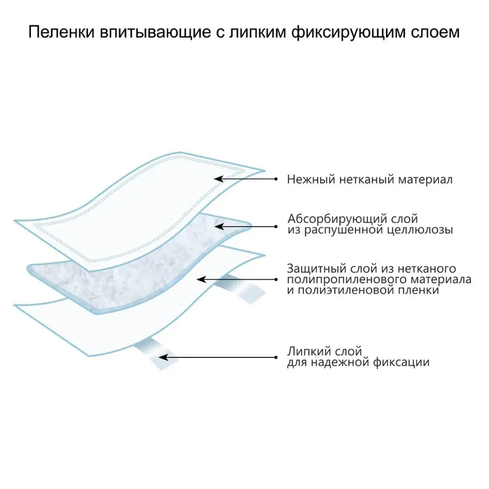 Пеленки одноразовые впитывающие 60х40 см, 30 шт. с липким слоем Пелигрин Л4030