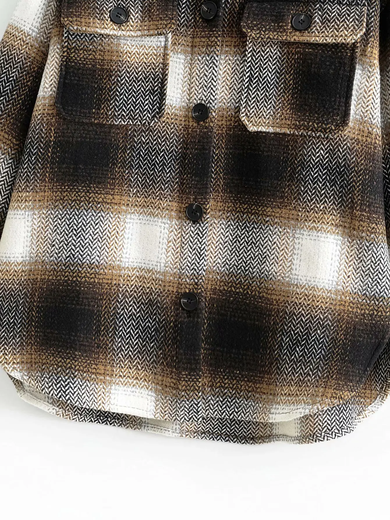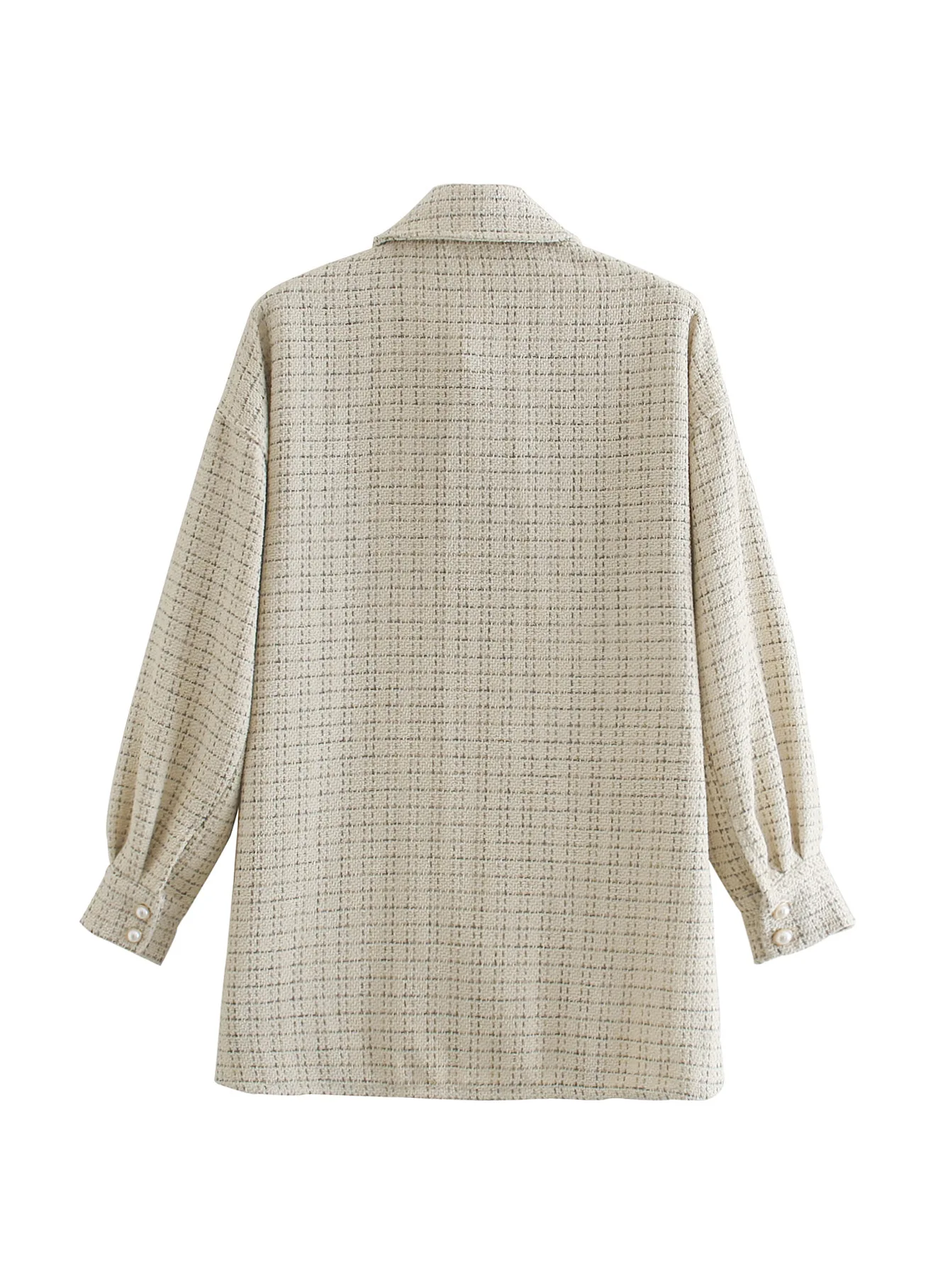 Рубашка женская твидовая в клетку, Повседневная Свободная Длинная б...