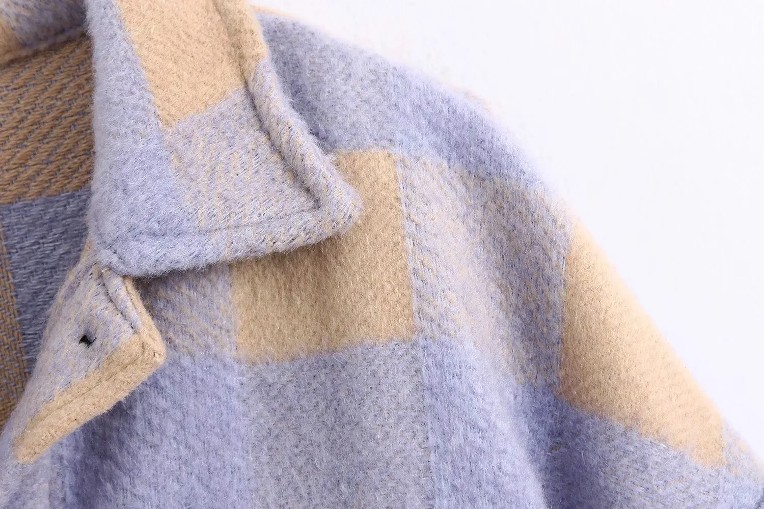Eliasha фиолетового цвета в клетку, на каждый день, Рубашки Женские куртки в винтажном стиле, с длинным рукавом Повседневные осень-зима теплая уличная смесь верхняя одежда пальто из твида