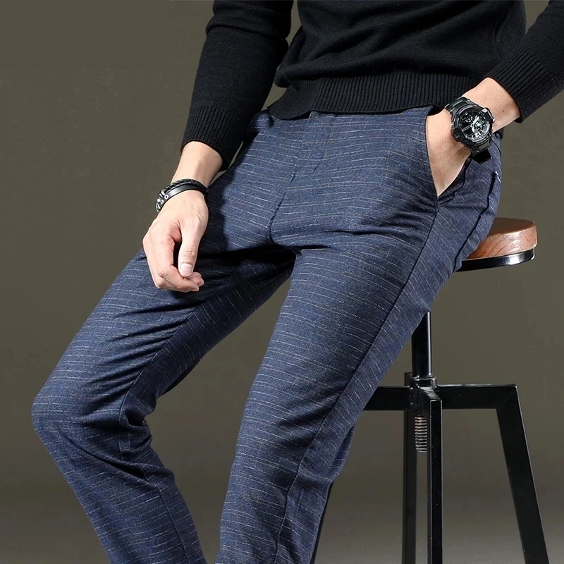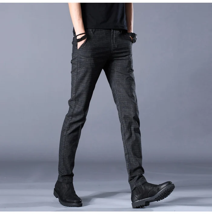 Брюки мужские в клетку, рабочая одежда, Стрейчевые модные облегающие повседневные штаны, Брендовые брюки, весна-осень 2021