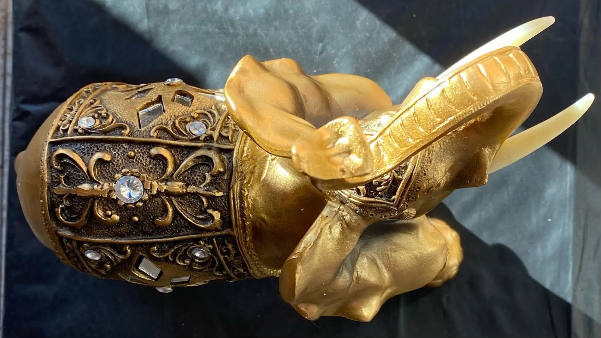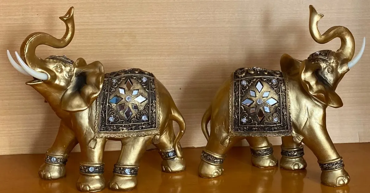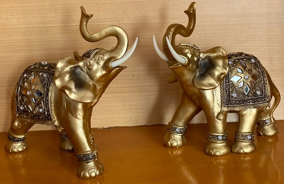 1. Описание: большая статуя слона, Счастливый, золотой, изделия из смолы, украшение для дома, украшение комнаты, персонализированные орнаменты, подарок
