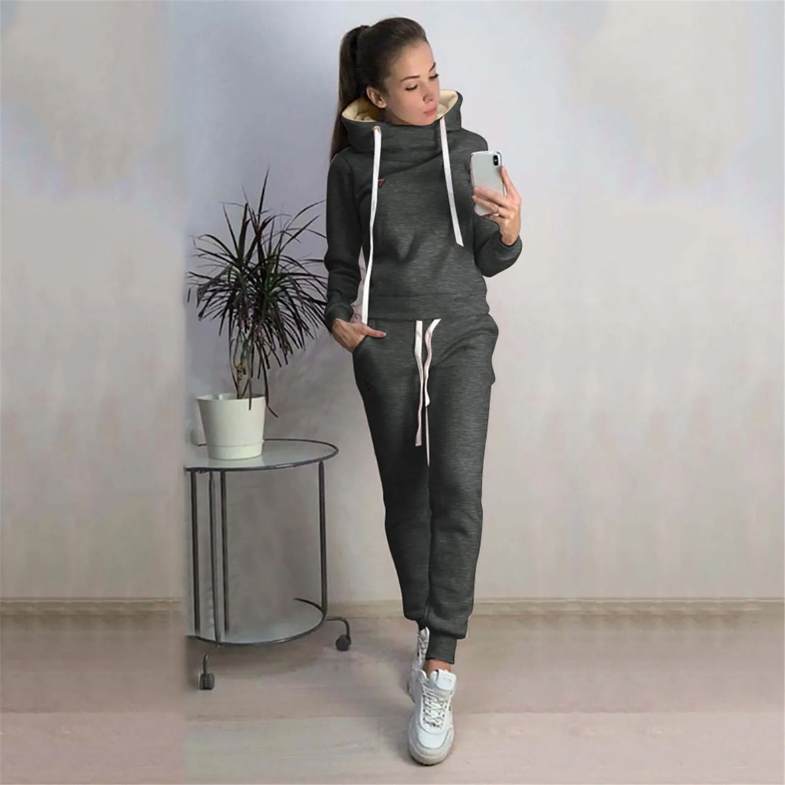 Женский спортивный костюм из 2 предметов, толстовка с капюшоном и брюки, осенне-зимний комплект с толстовкой, спортивные костюмы @ 40