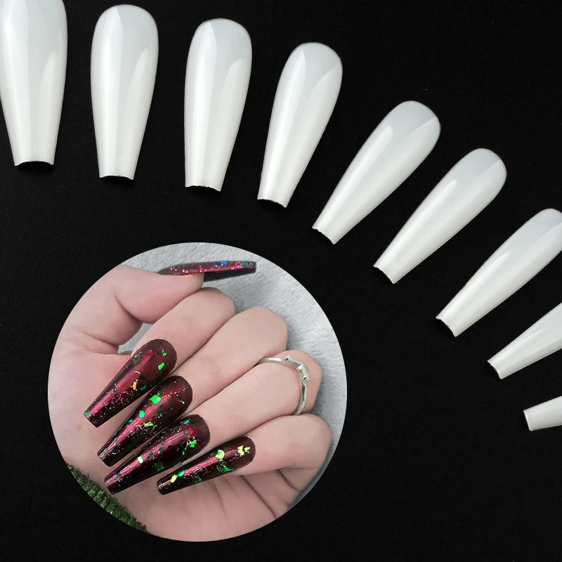 600 шт.пакет длинные гроб накладные ногти-стилеты гвозди из АБС-пластика в новом дизайне; Балетки для Неил арта украшения для кончиков ногтей Clearнатуральные поддельные накладные ногти