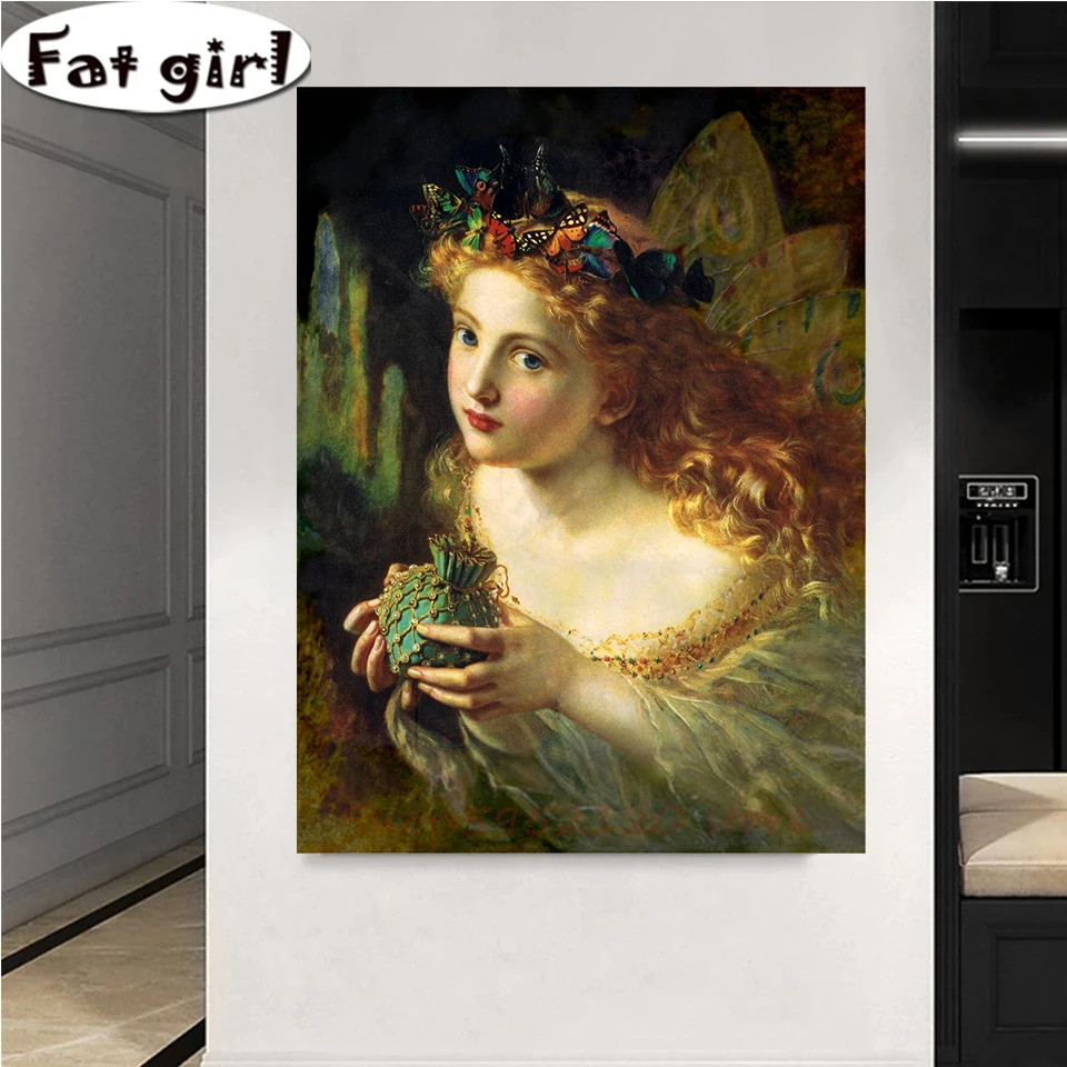 5D алмазная живопись, современный постер в стиле арт-деко, Бабочка, фея, сделай сам, вышивка, девушка, мозаика, полная квадратная, круглая, вышивка крестиком, подарок
