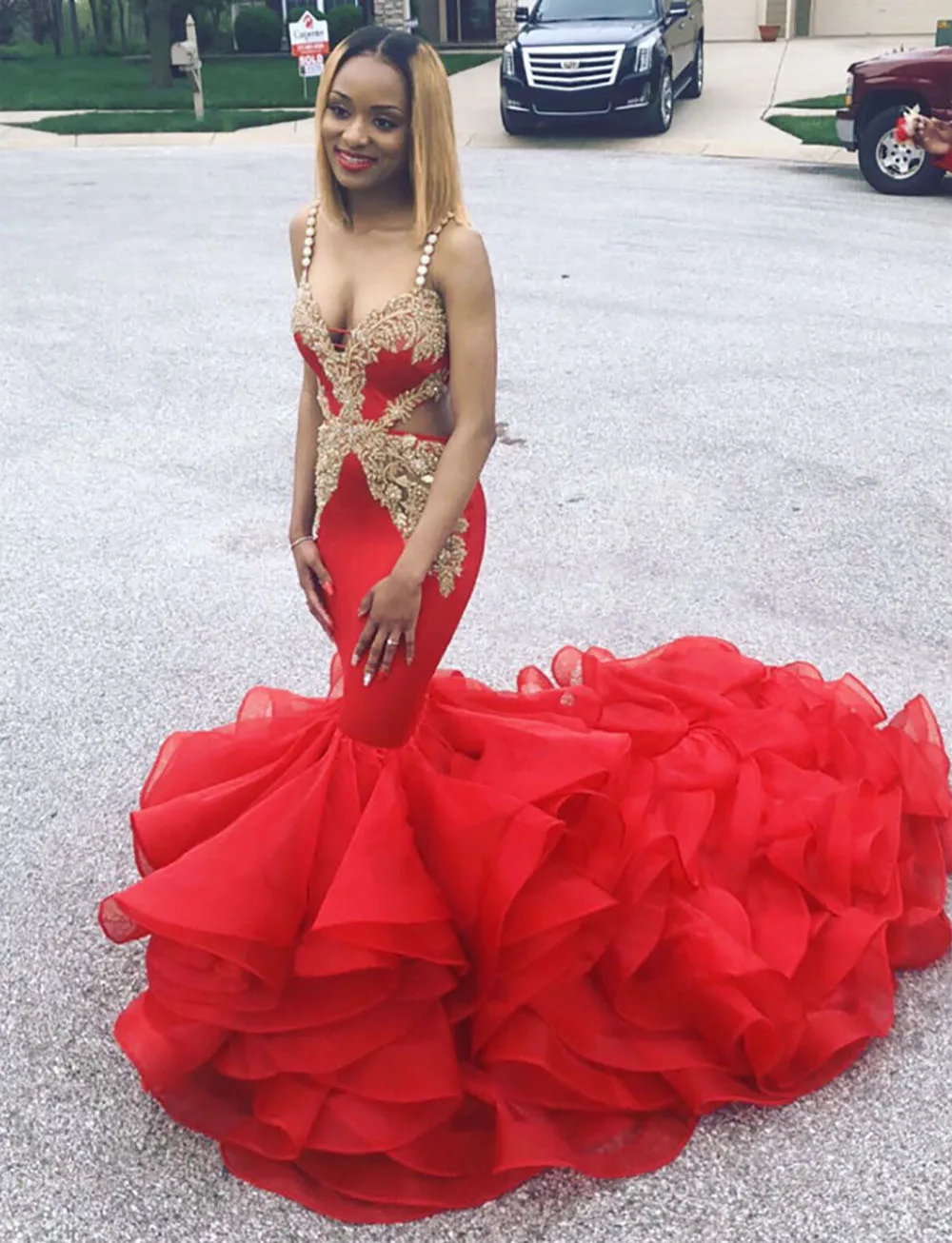 Женское вечернее платье-русалка, красное платье без рукавов из органзы