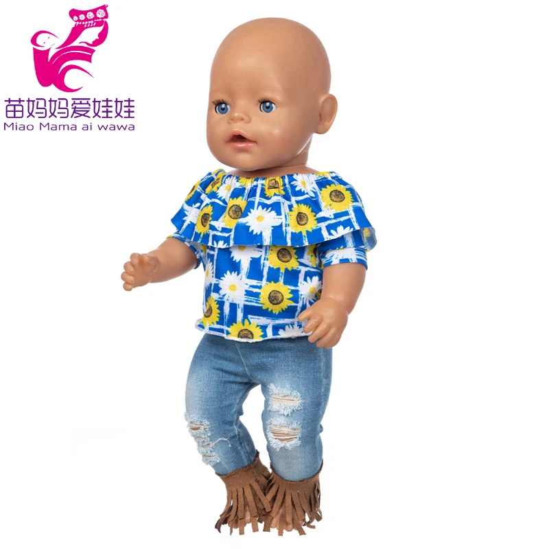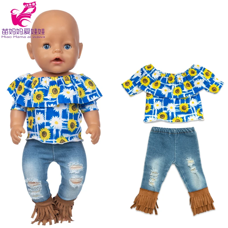 Одежда для кукол для новорожденных, рубашка с машинкой, джинсовый к...
