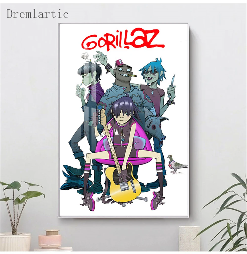 Gorillaz # г-н украшения дома холст для картины на индивидуальный заказ настенный Шелковый плакат ткань # KC-23