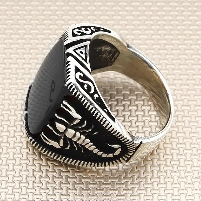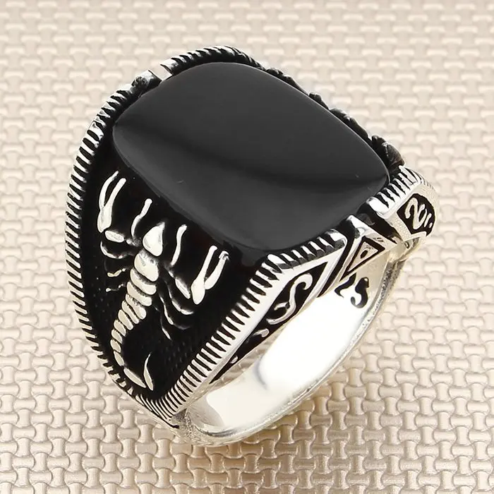 Винтажное окисленное прямоугольное мужское серебряное кольцо из черного оникса с животным скорпионом, Сделано в Турции, 925 пробы серебро