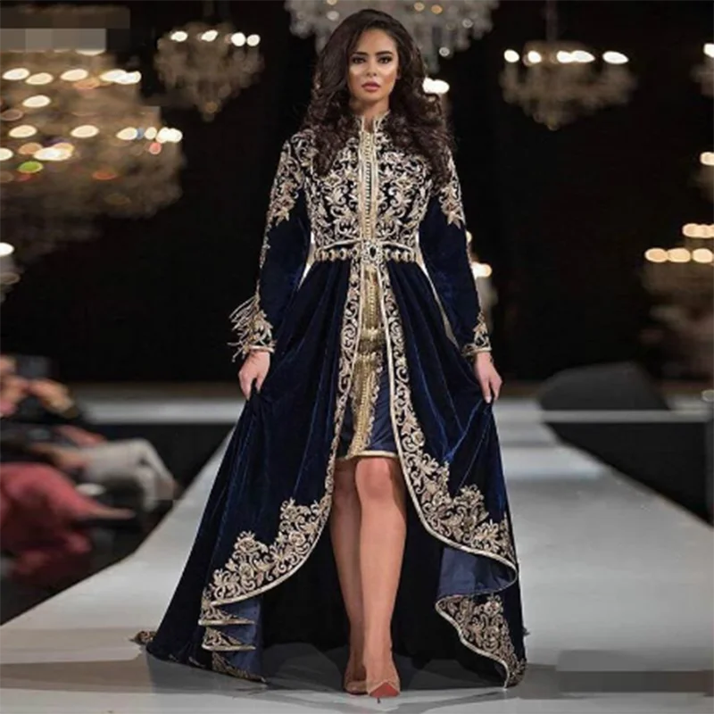 Элегантные темно-синие вечерние платья с длинными рукавами с вышивкой алжирский каракоу длинные платья для выпускного вечера вечерние платья на заказ