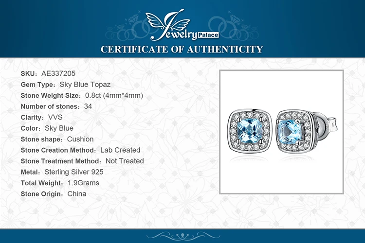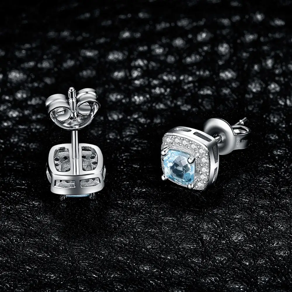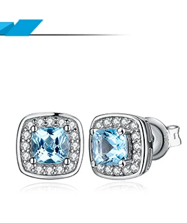 Женские серьги-гвоздики из серебра 925 пробы с натуральным голубым топазом