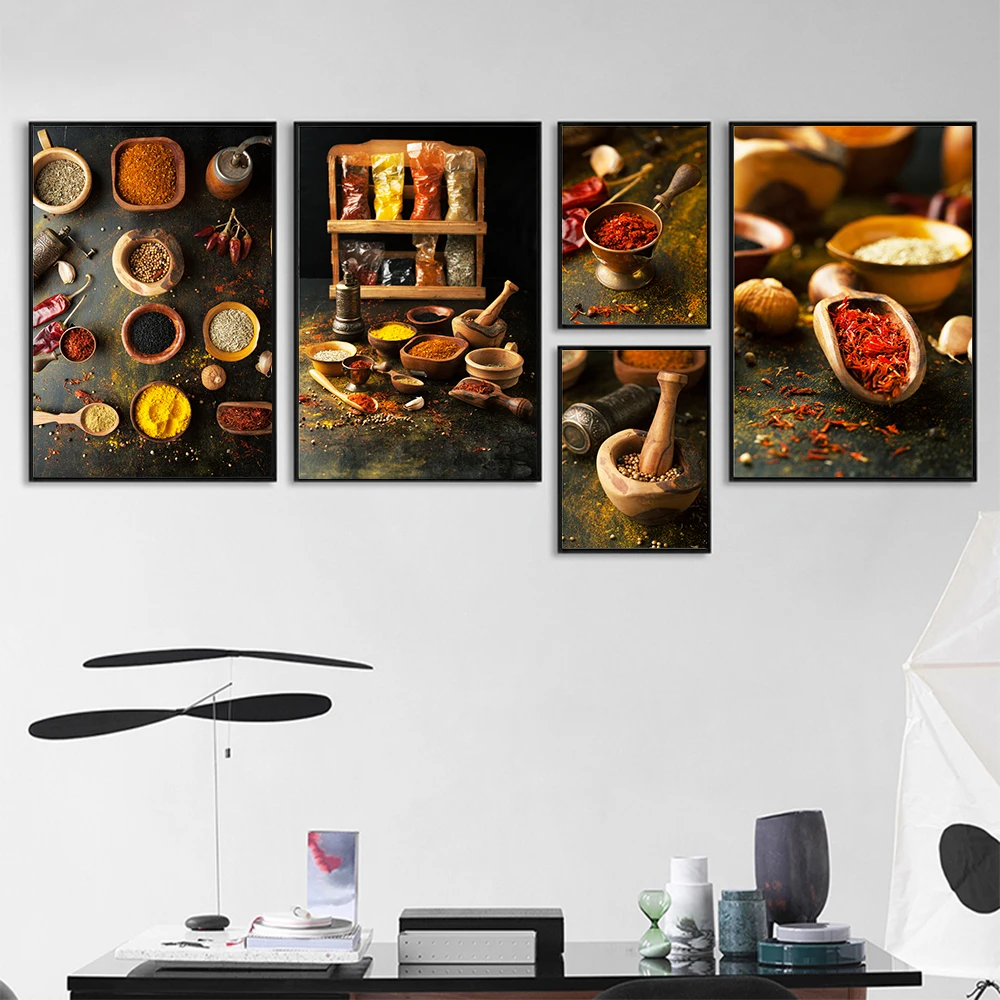 Ароматные специи, приправы, перец чили, паприка, куркума, печатный плакат, настенная живопись, холст, домашний декор, кухня, Современная Pictur