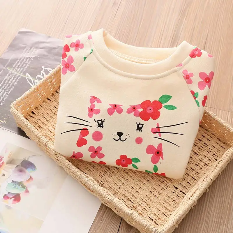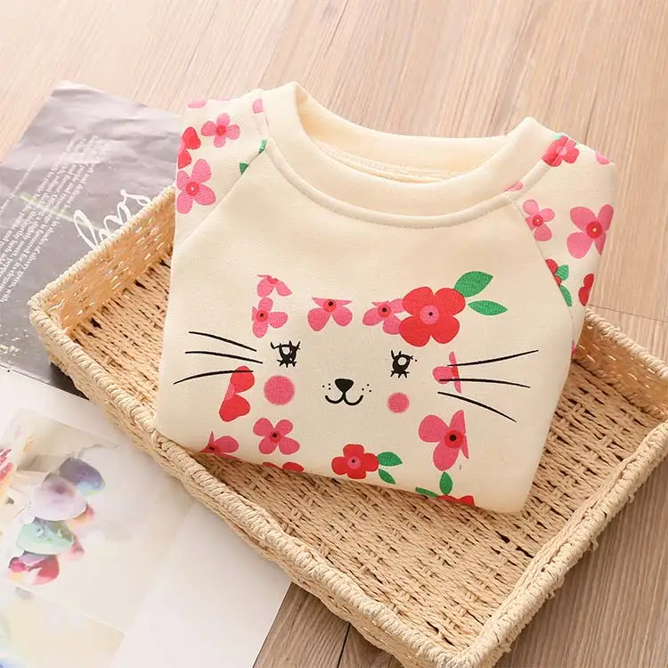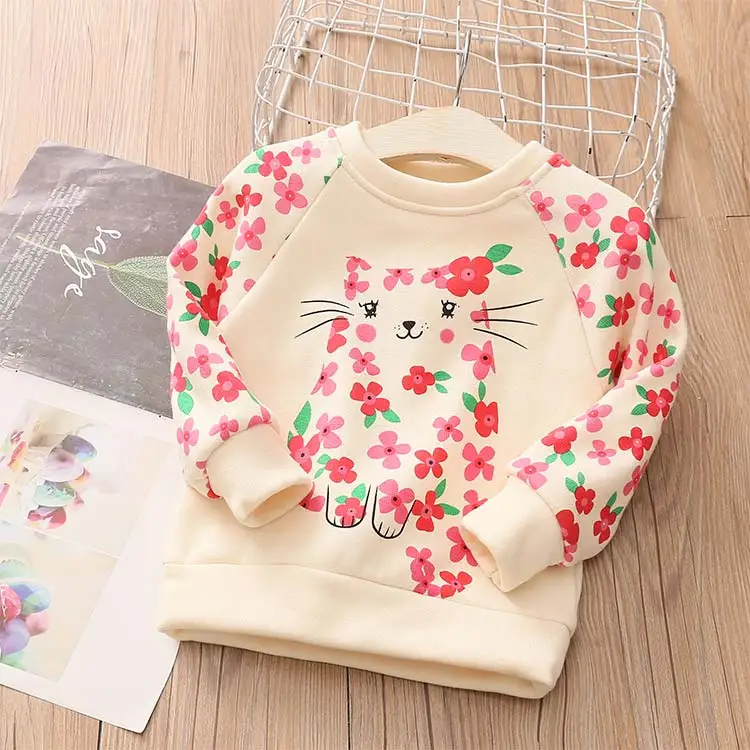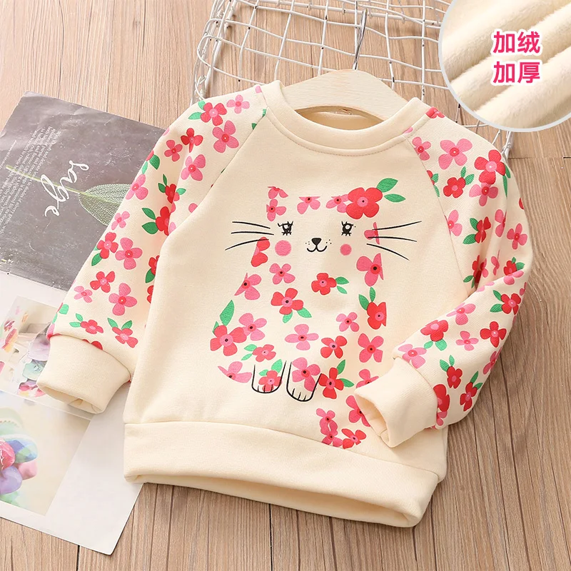 Свитшот для маленьких кошек, новинка весны 2021, детская одежда, детская милая симпатичная одежда, детский плотный бархатный пуловер для маленьких девочек, топы