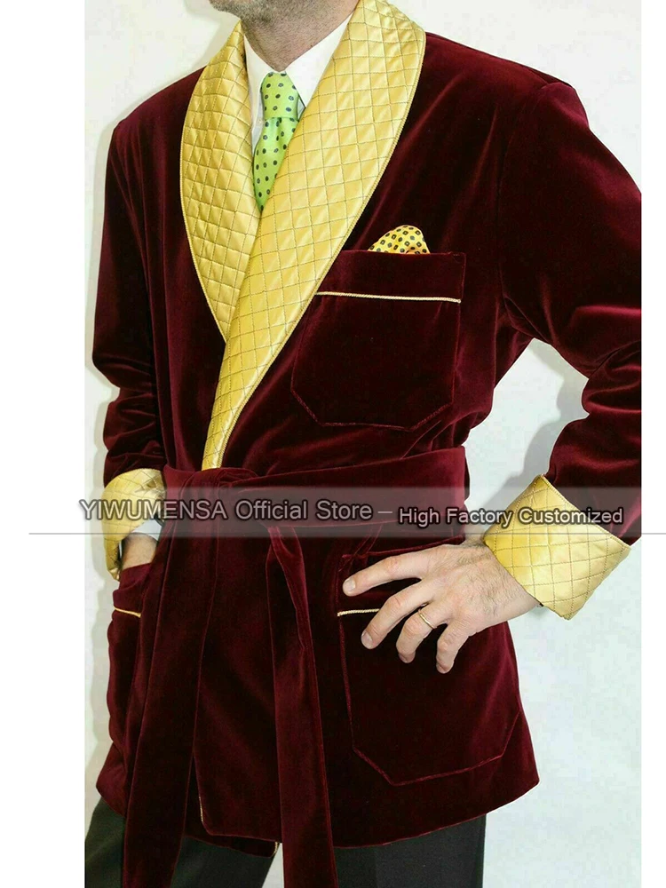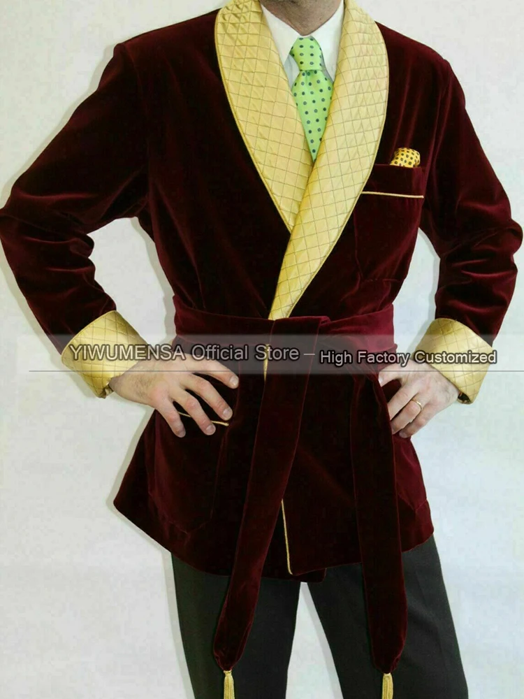 Новейший дизайн пальто YIWUMENSA с поясом куртки бордового цвета приталенный мужской блейзер для ужина костюмы 2021 изготовленный на заказ мужской