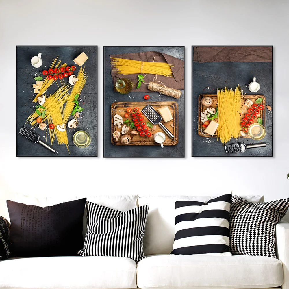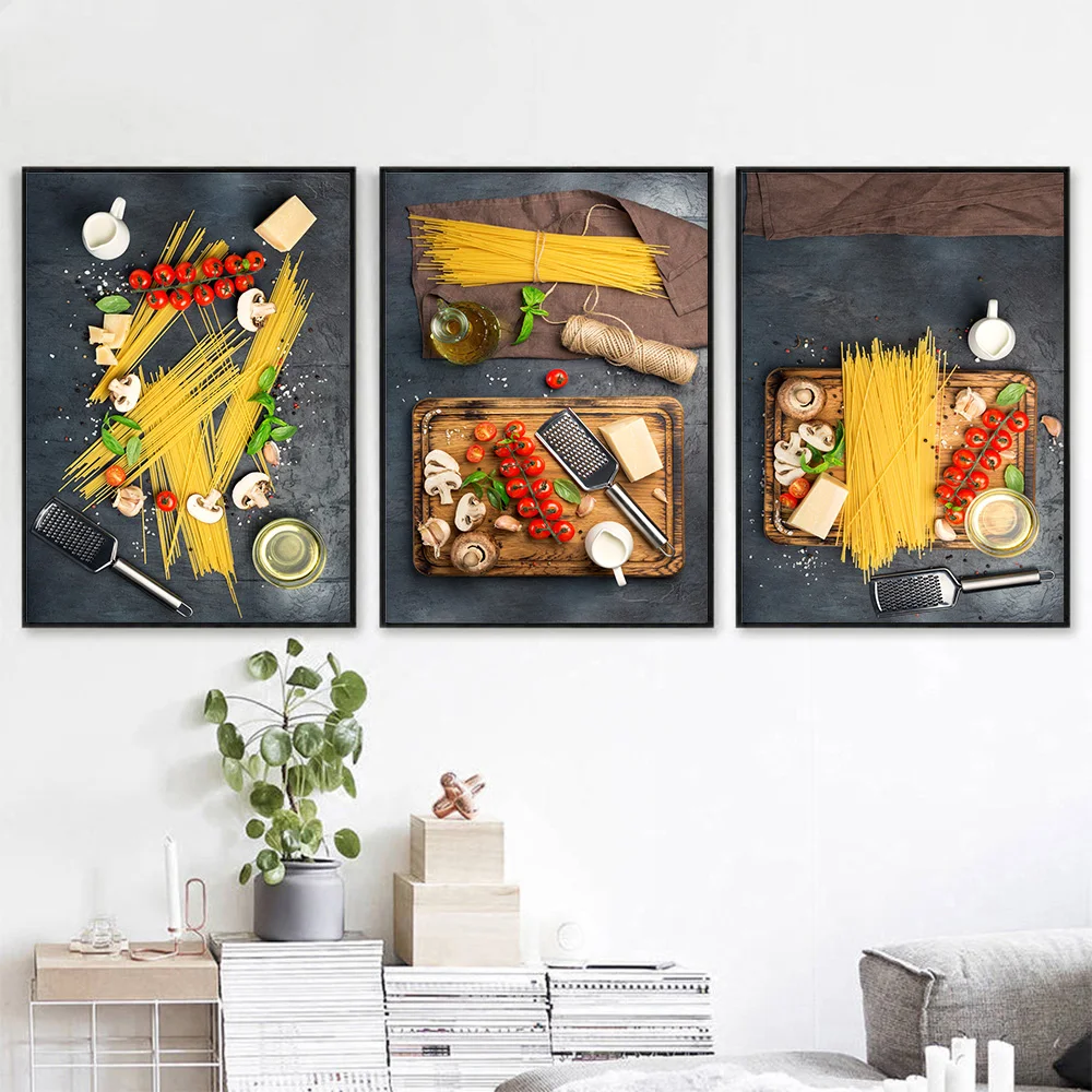 Картина для еды Современная Кухня Декор сырая паста Итальянские Спагетти Холст Плакаты принты настенные художественные картины для бара ресторана