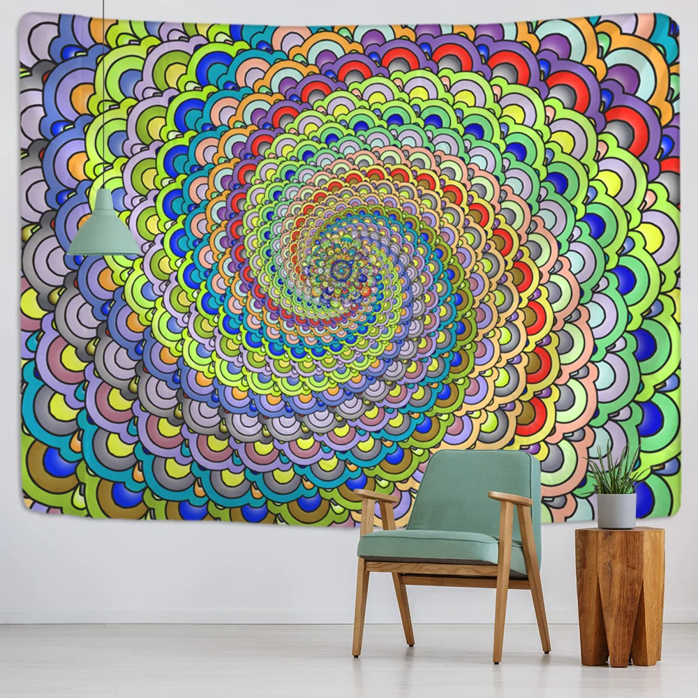 PsychedelicDizzinessWallTapestryHangingDecorHomeRoomWitchcraftHippieMandalaAstrologyWallpaperBedroomDORMTarotSunMoonCustomHippie
