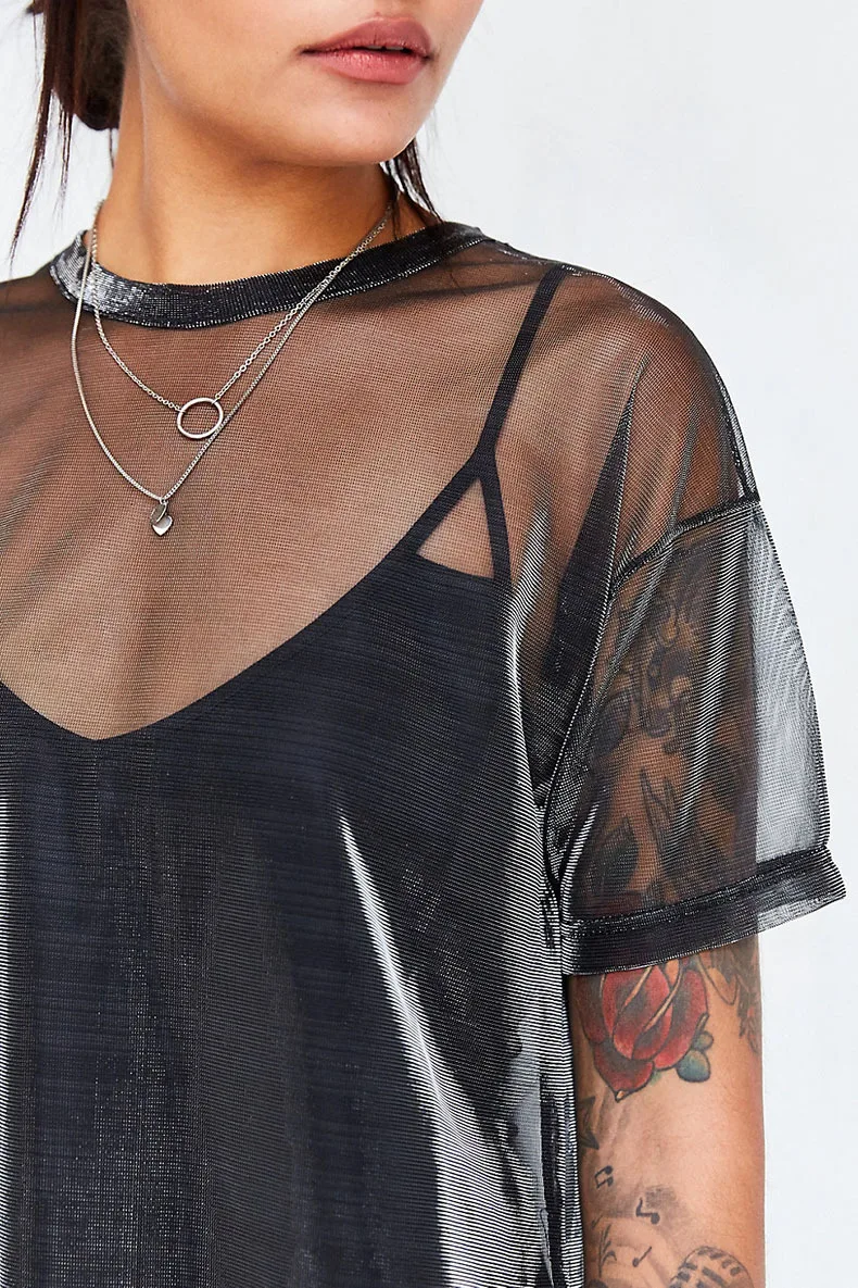 2021 Летняя Сексуальная Сетчатая футболка, прозрачные женские футболки с коротким рукавом, прозрачные блестящие повседневные женские топы, Женская винтажная блуза