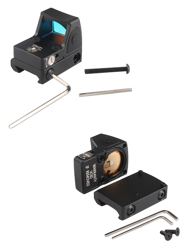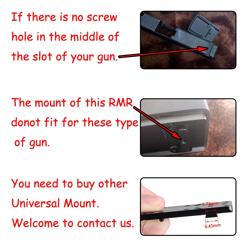 Мини-прицел с красной точкой имеет не только одно крепление для рельса Пикатинни 20 мм, но и одно крепление 22 мм. Но крепление 22 мм подходит не для всех типов пистолетов. Если у вашего пистолета есть ТРАПЕЦИЕВИДНОЕ отверстие, это 22 мм крепление не подходит для вашего пистолета. Вам нужно одно универсальное крепление.