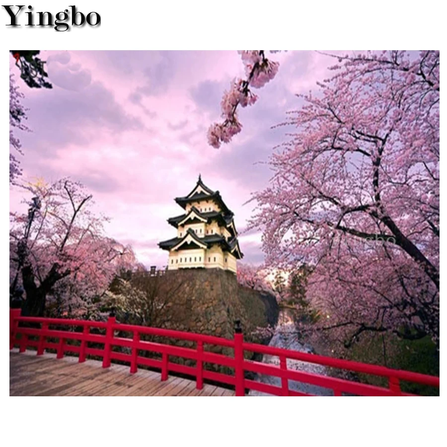 5D DIY Алмазная картина Япония Вишневый цвести мост пейзаж полный квадратный круглый дрель мозаика Алмазная вышивка Декор Новый