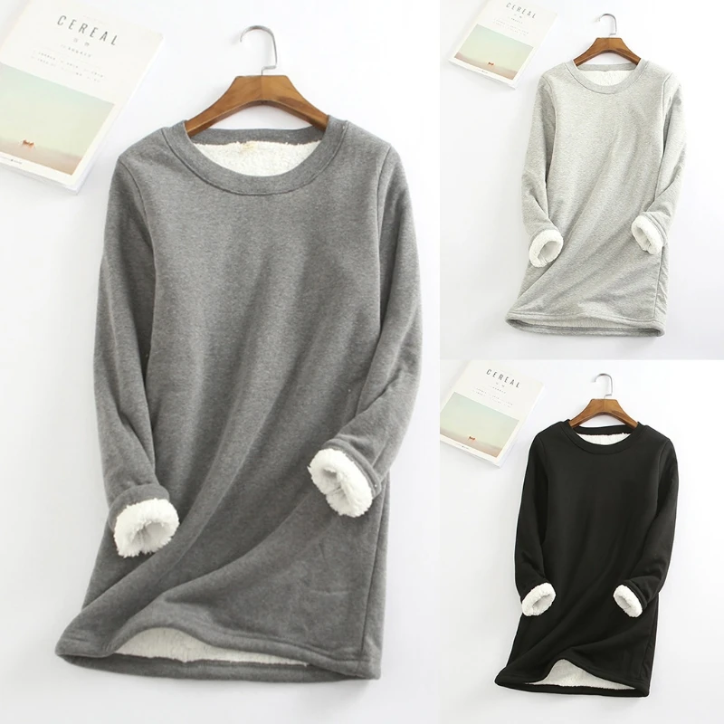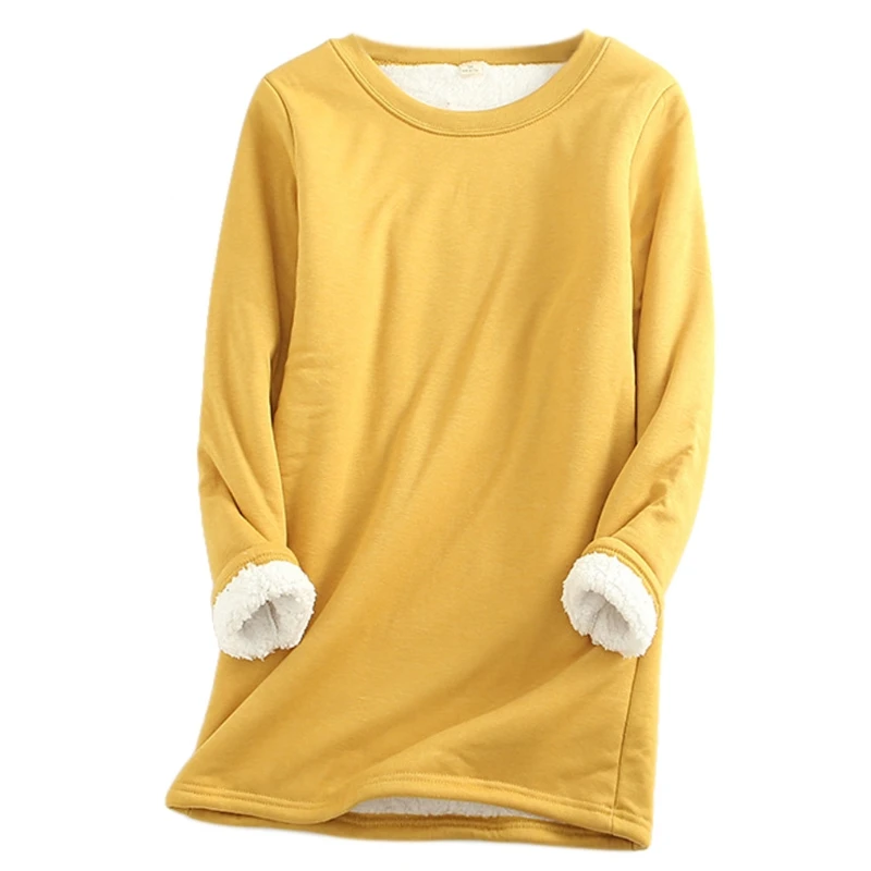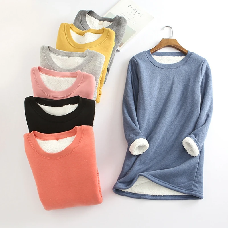 Свитшот женский зимний из искусственного флиса, с длинным рукавом и круглым вырезом