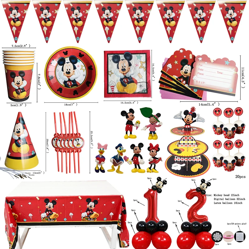 Красный Микки Маус тема одноразовая посуда детский душ Детские вече...