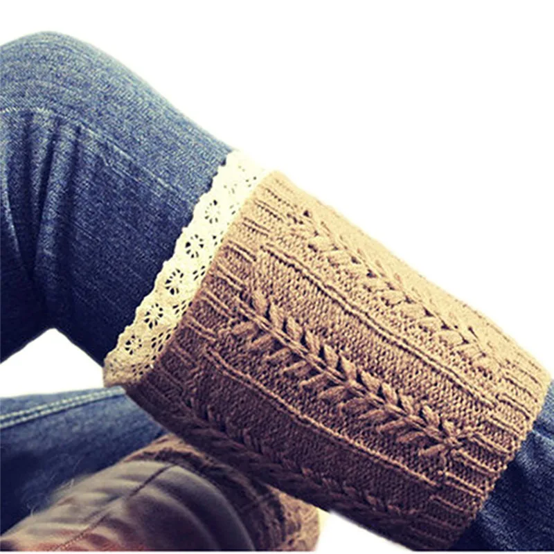 Женские трикотажные гетры, зимние короткие гетры, модные теплые женские леггинсы с манжетами