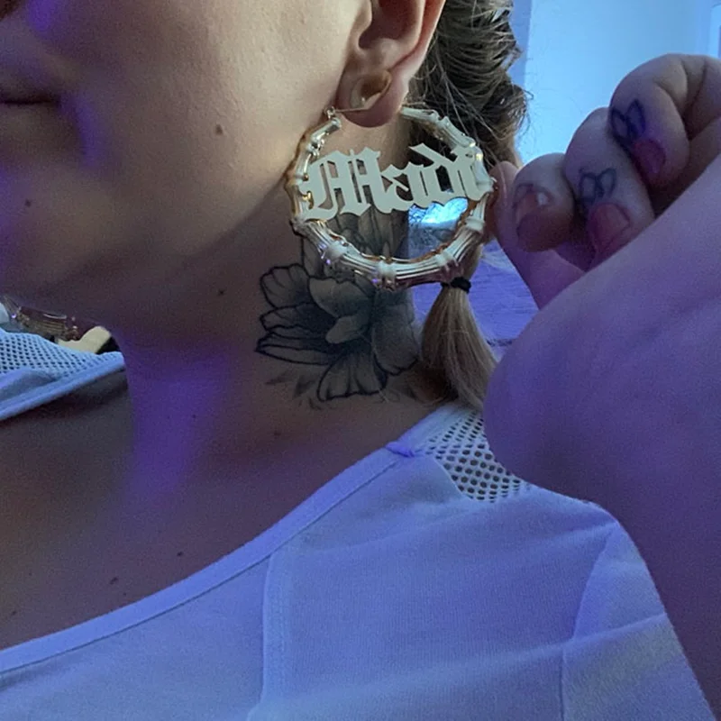 KristenCo 30-125 мм Бамбуковые серьги пользовательское имя серьги индивидуальные бамбук серьги-кольца Нержавеющаясталь серьги для Для женщин Подарки