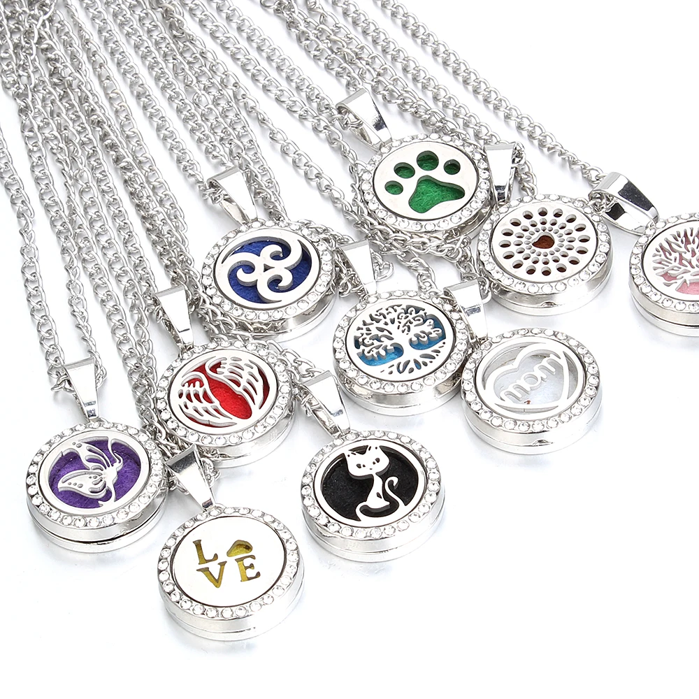 Новый медальон с ароматом Цепочки и ожерелья Магнитная Древо жизни с распылением ароматерапевтического эфирного масла диффузор духи медальон кулон ювелирные изделия Бесплатная 10 тормозные колодки