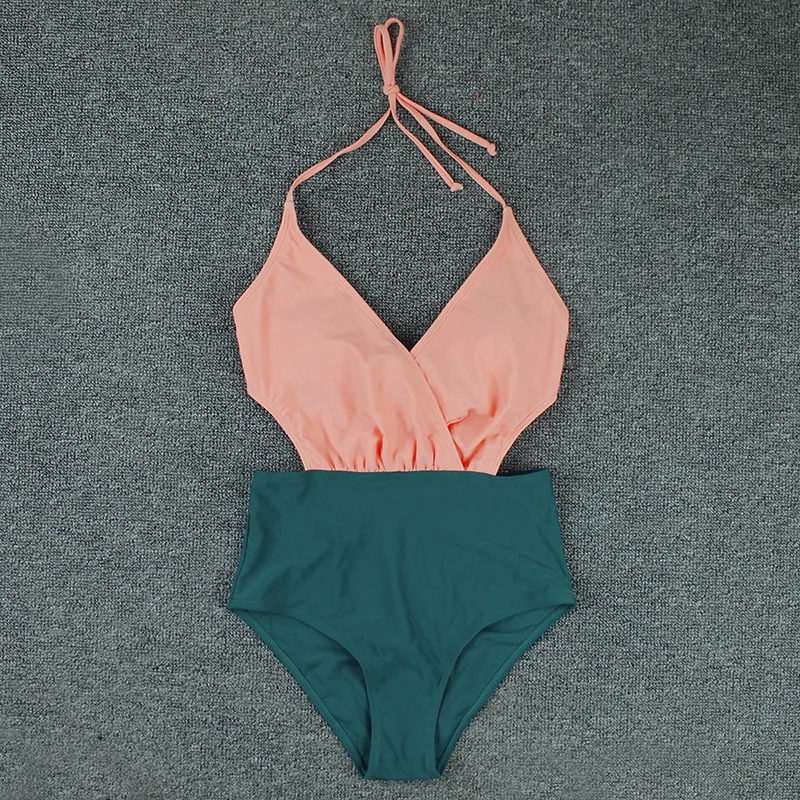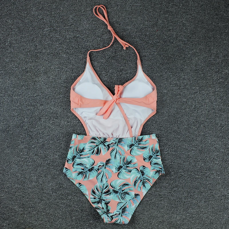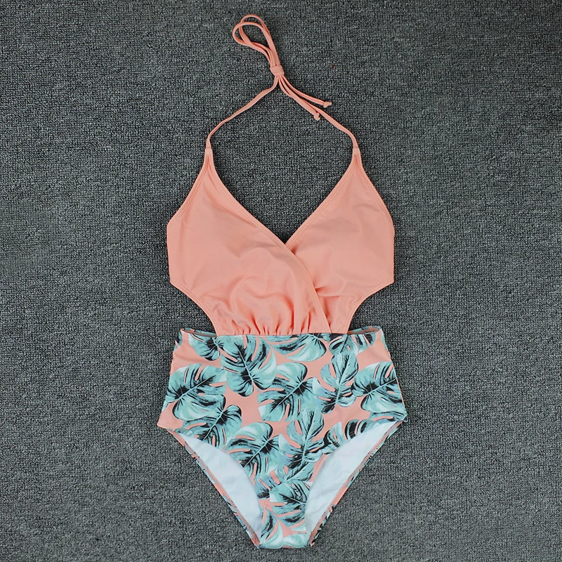 Цельный купальник, женский сексуальный купальник с глубоким V-образным вырезом, новинка 2022, пляжный Монокини на шнуровке, однотонные купальные костюмы с листьями, боди, летний XL