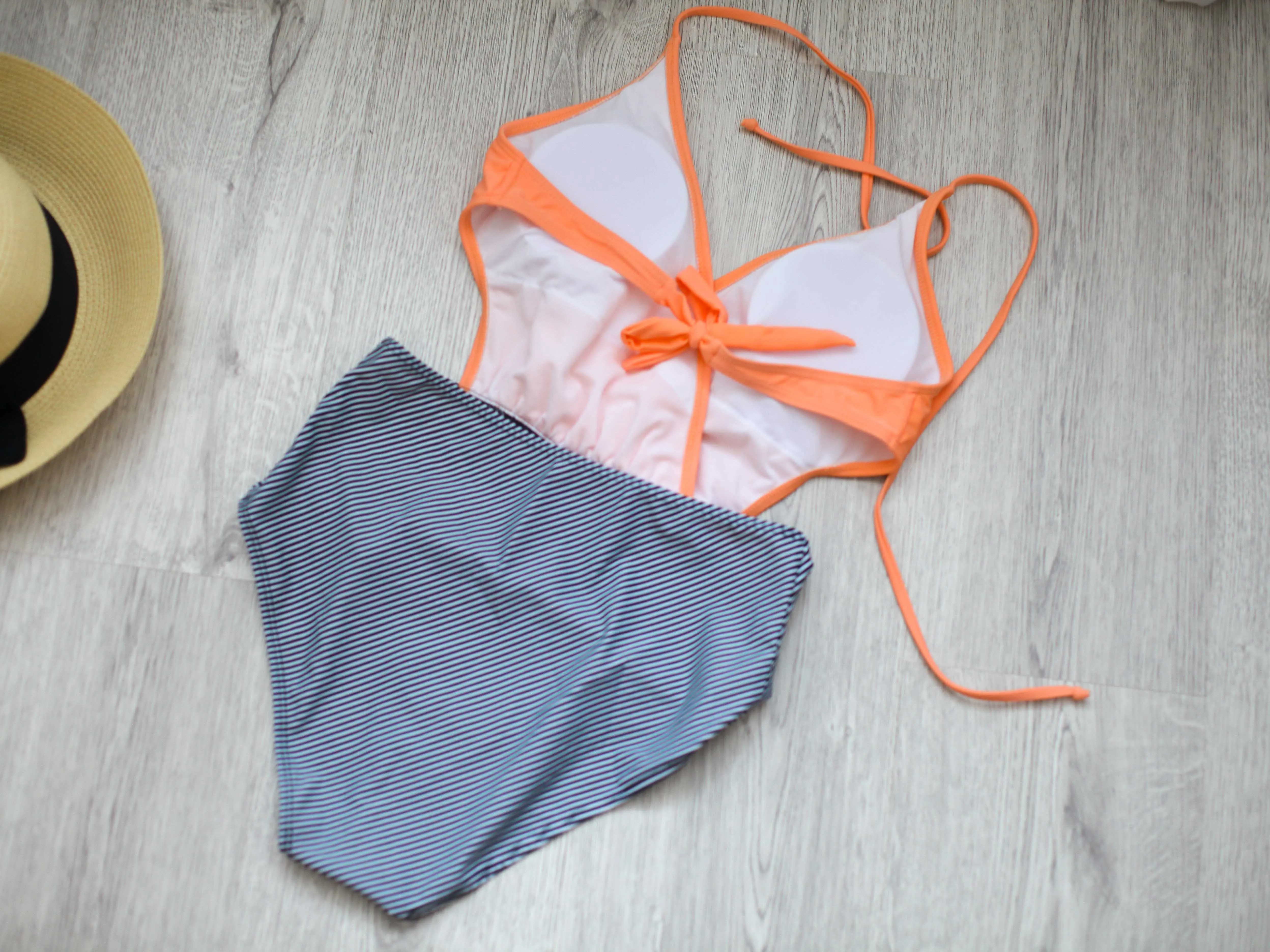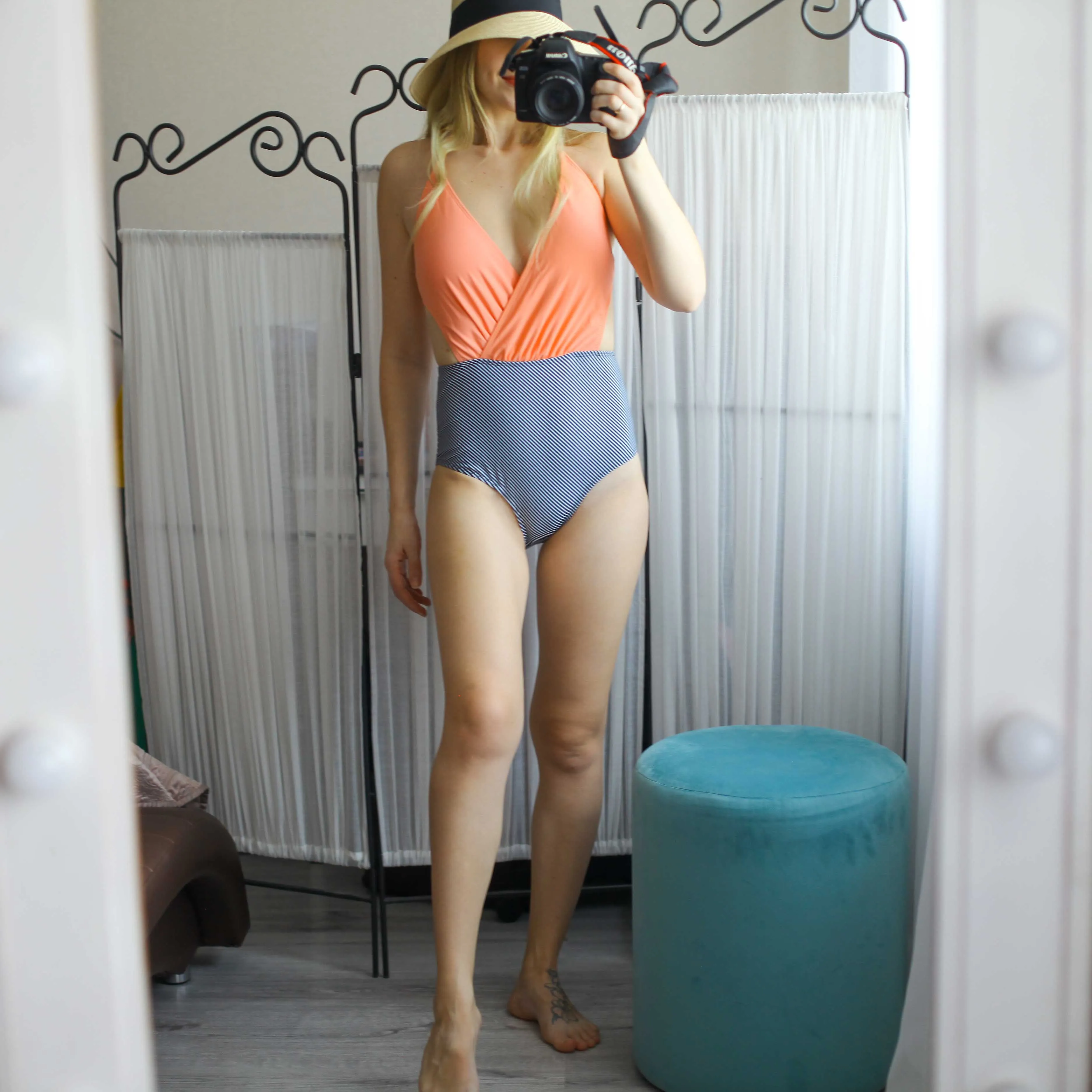 Доставка 2 недели. Я заказала маркировку М на параметры 85-70-90, рост 163см - отлично подошло. Купальник слитный. Есть завязки вокруг шеи и по объему. Присутствуют съемные вставки-чашечки. В моем варианте верх однотонный, низ полосатый. Трусики достаточно закрытые. Сзади они высокие. Гигиеническая наклейка присутствует. Качество отличное. Пошив ровный и аккуратный. Материал хороший. Купальник хороший. Модель удобная, симпатичная. Мне понравился.