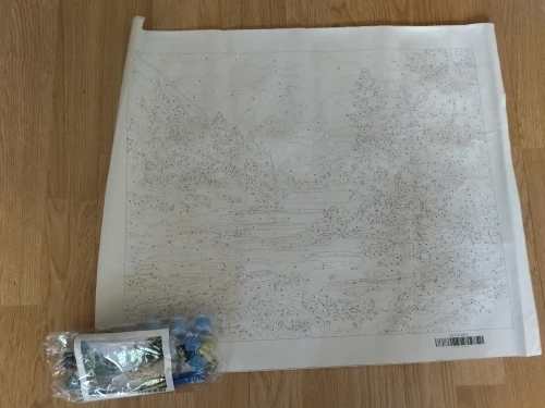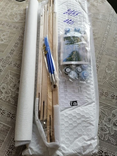 Картина пришла в сроки, указанные в описании. Намотана на поролоновый валик. Пришла на отделение укрпочты. Всё на месте-краски, кисти. Не рисовала, это подарок был.