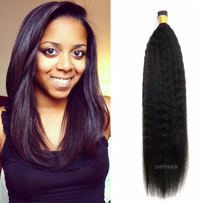 Прямые накладные волосы Yaki I Tip Для чернокожих женщин, микролинк, объемные бразильские человеческие волосы Yaki, кератиновые волосы, 1 г/прядь, 100 прядей