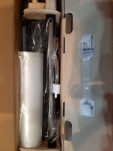 доставка до Краснодара 42 дня. Упаковка пупырка, картон коробка чуть помята, но без повреждения вакуматора. Приятно упаковано: с бантиком))). Так понимаю в подарок рулон плёнки и несколько пакетов. Инструкции на русском языке НЕТ. Как пользоваться интуитивно понятно. Мощность 110W , вакумирует отлично. Рекомендую