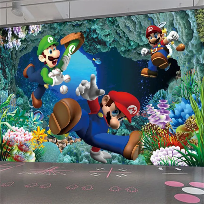 Пользовательские мультфильм обои домашний декор современная детская комната фон обои для детской комнаты Супер Марио анимация 3D фрески