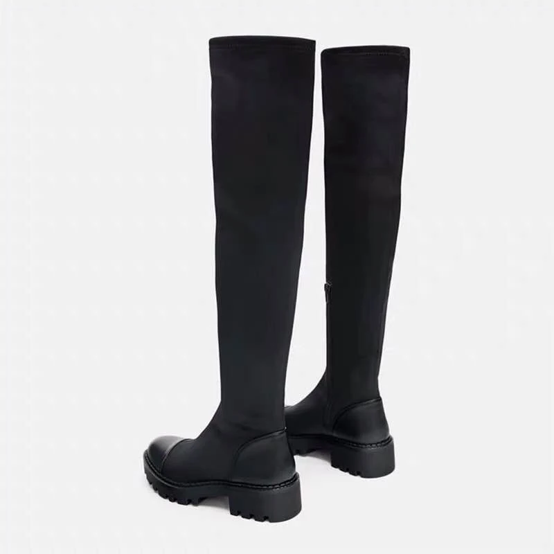 Новые облегающие эластичные сапоги до колена из лайкры, зимние сапоги на платформе, женские длинные сапоги, зимняя обувь, женские сапоги-чулки, Сапоги выше колена
