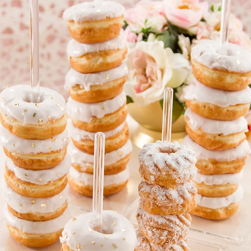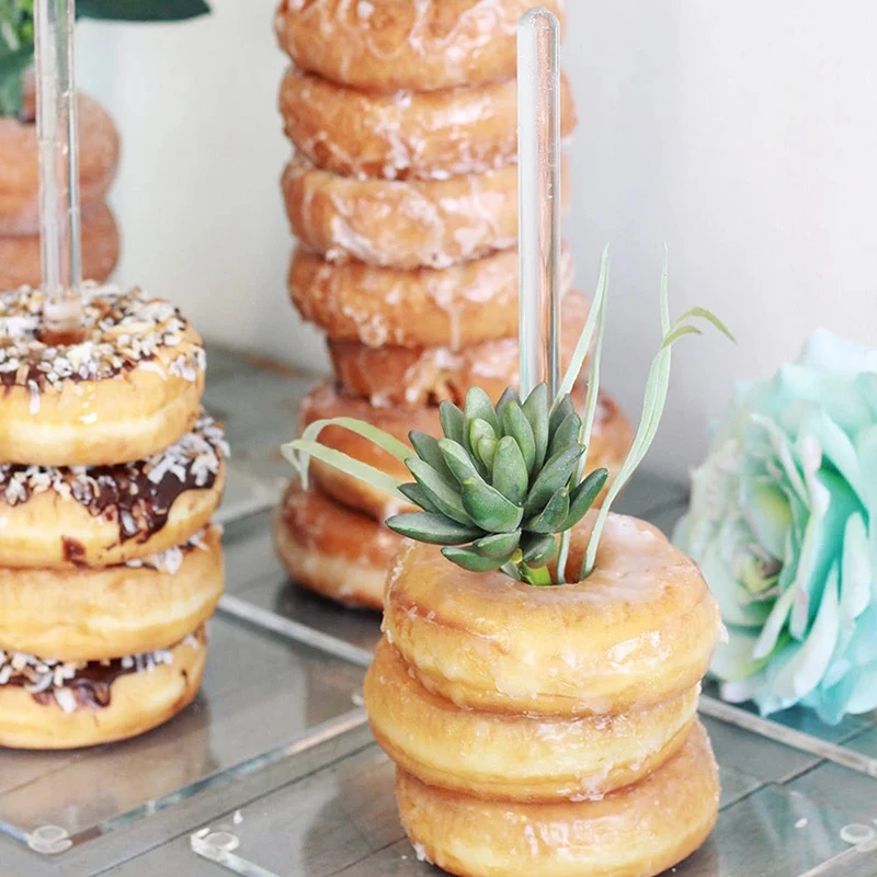 Дисплей для угощений: отображение пончиков в увлекательном и уникальном образе с помощью прозрачных акриловых подставок для пончиков. Идеально подходит для того, чтобы порадовать ваших гостей во время мечтательной свадьбы, дня рождения, выпусквечерние вечера, вечеринки ребенка или девичника.