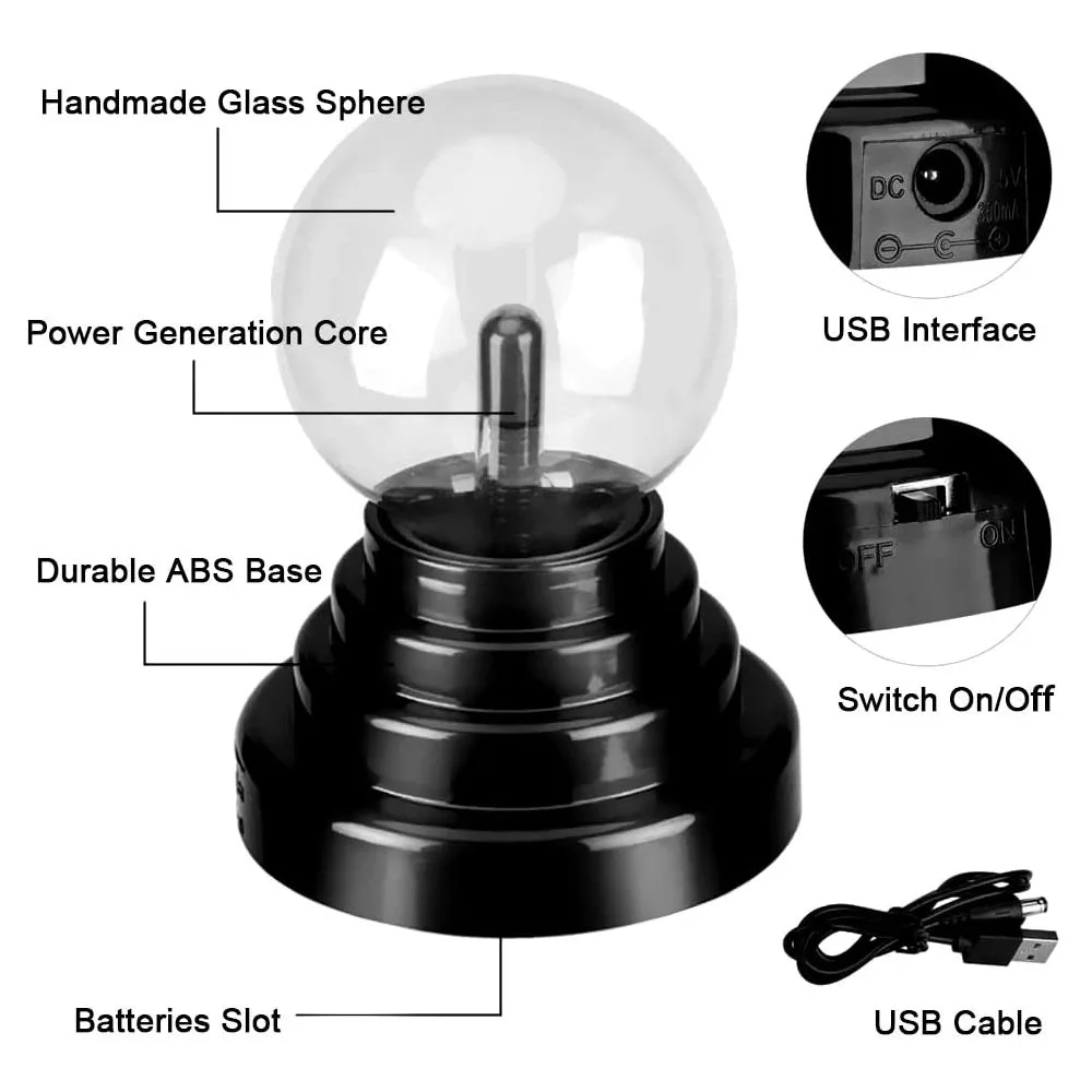 USB-стекло волшебный электростатический ионный шар лампа 3 4 5 6 8 дюймов светодиодный хрустальный шар светильник сенсорным датчиком Сфера атмосферная лампа игрушки декор