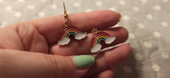 симпатичные сережки,ребенок доволен. как будут носиться,покажет время.