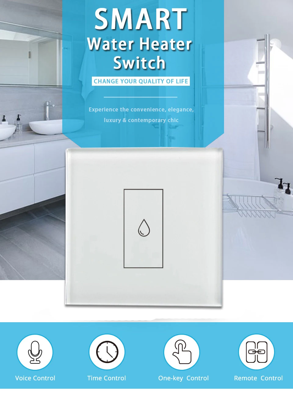 Specialized специализированный переключатель для высокомощной бытовой техники Высокое качество 20А реле, более стабильное и безопасное, макс. 4400 Вт ※ Сенсорная панель из закаленного стекла Сенсорная кнопка высокой чувствительности, быстрая реакция, без задержек Remote дистанционное управление с помощью приложения из любого места Управление (включение/выключение, Установка таймера) устройство удаленно с помощью приложения «Smart Life»/«Tuya Smart» на вашем смартфоне с помощью Wi-Fi или сети 4G/5G, не требуется концентратор/шлюз. ※ Голос Управление Работает с Amazon Alexa, Google Home и Siri(iOS 12,0 или более поздней версии), вы можете управлять голосовым устройством через голосовые команды. ※ Многофункциональный таймер: Обратный отсчет/Расписание/циркуляция/случайный/инчинг -Вы можете установить 1 или более таймер, чтобы сделать бойлер включенным/выключенным автоматически, или работать в течение определенного периода времени, а затем автоматически закрыть. Совместно совместно используемое устройство и групповое управление Несколько сотовых телефонов могут управлять одним и тем же переключателем котла; Один мобильный телефон может управлять несколькими переключателями одновременно.