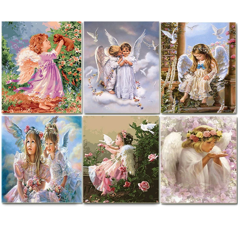 Картина по номерам Ангел для детей на холсте, наборы сделай сам, акриловые краски для взрослых, рисование, Раскраска по номерам, декор для творчества