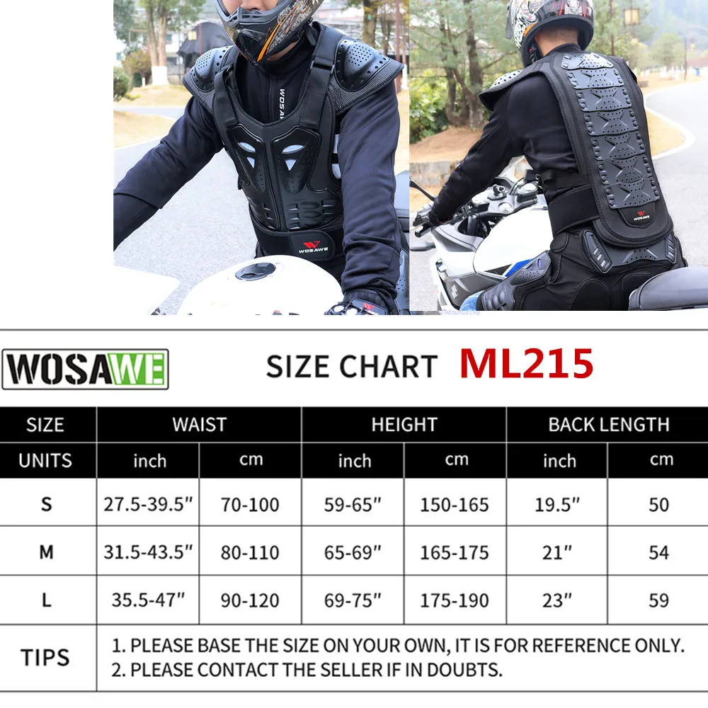 Бронированный жилет WOSAWE для мотоцикла, костюм для гонок, защитная куртка, защитное снаряжение, налокотники, наколенники