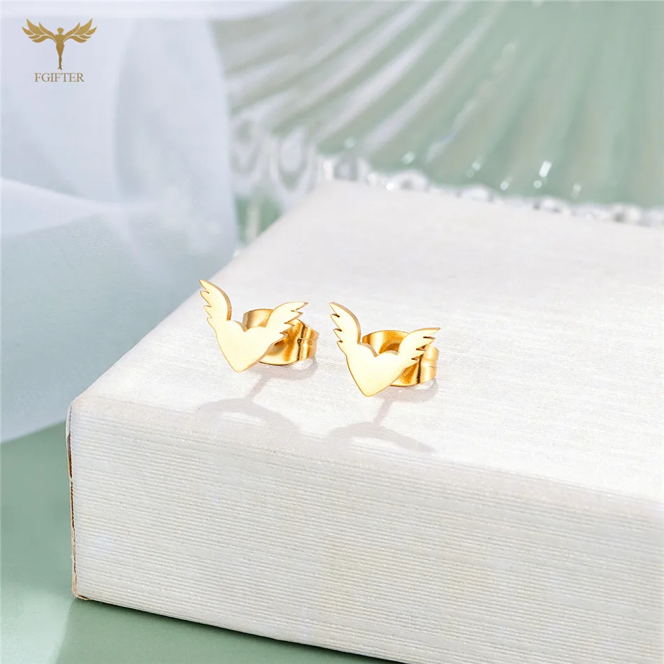 Романтичные серьги в форме сердца и крыльев, аксессуары для влюбленных пар, модное Золотое ювелирное изделие из нержавеющей стали для мужчин и женщин