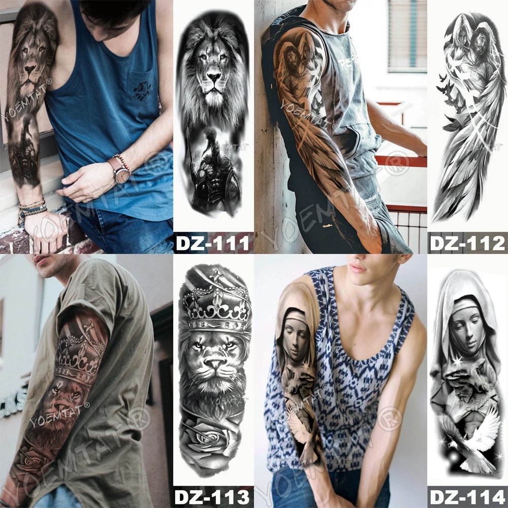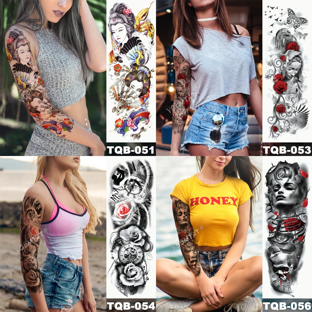 Большой рукав на руку, тату-часы, голубь, роза, водостойкая Временная имитация тату-наклейка, Череп, крест для мужчин и женщин, полный тотем, тату